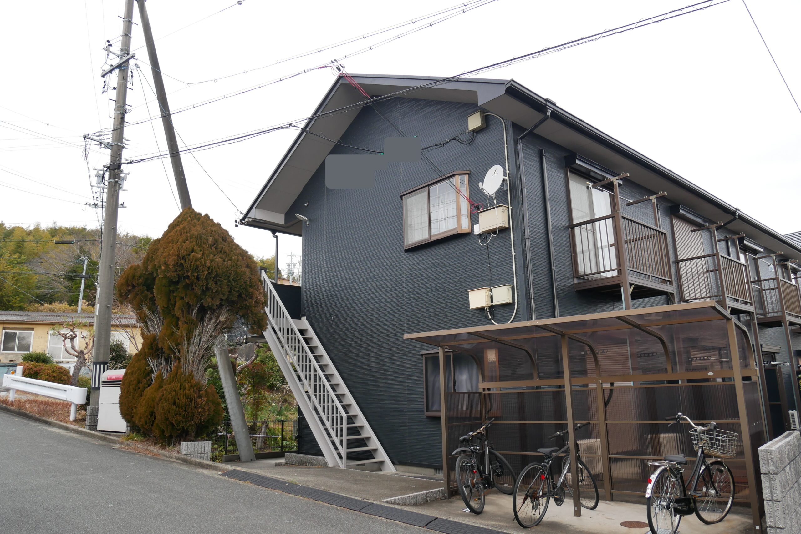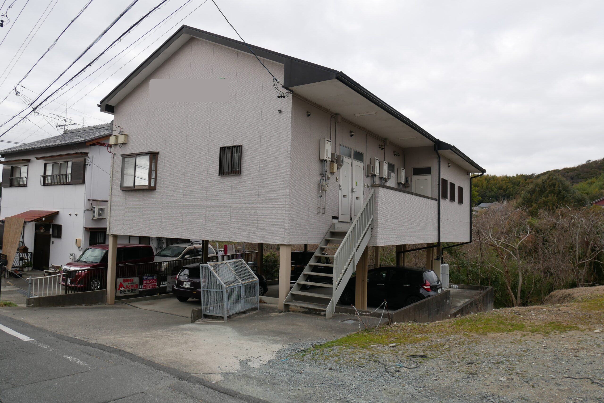 入口、駐車場は裏にございます